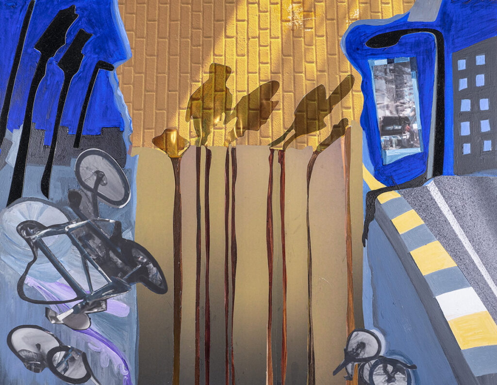 Mixed media (cardboard, printed images, decorative paper, acrylic), 16 x 20 in, 2023